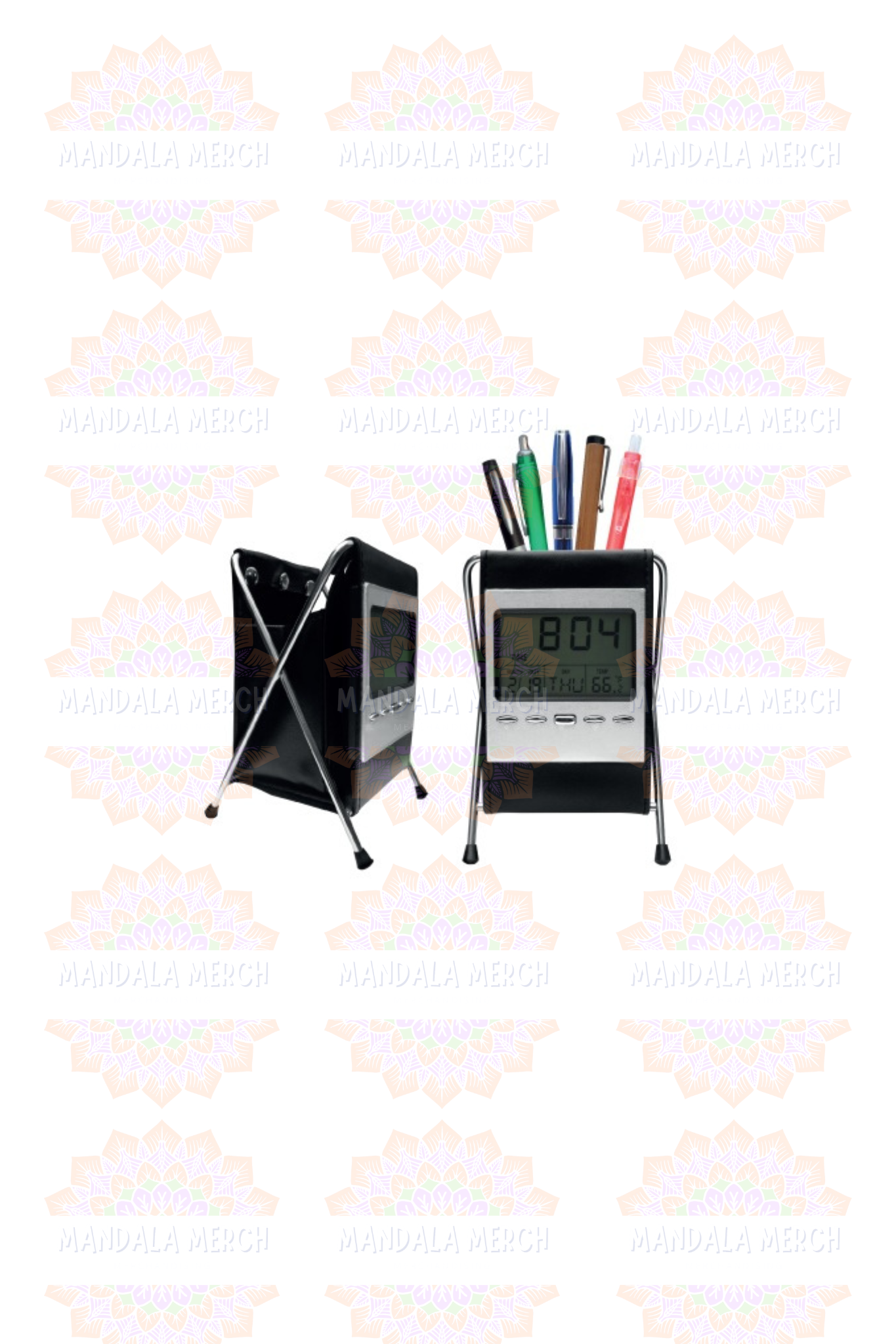 Portalapicero con cuerina y soporte de metal, con reloj en la parte frontal