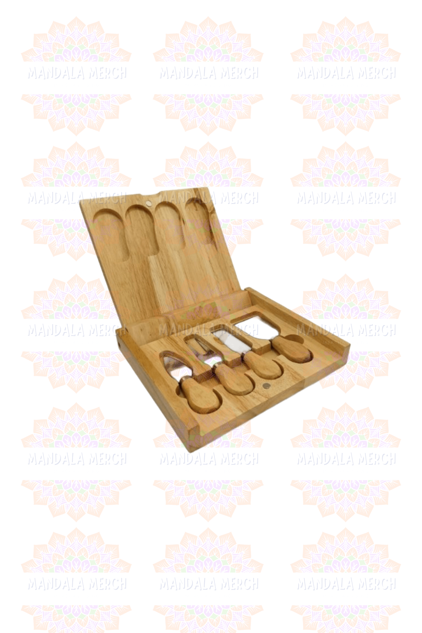 Regalo Corporativo Premium. Estuche de madera, incluye 4 accesorios de acero inoxidable con mango de madera. Tapa imantada.